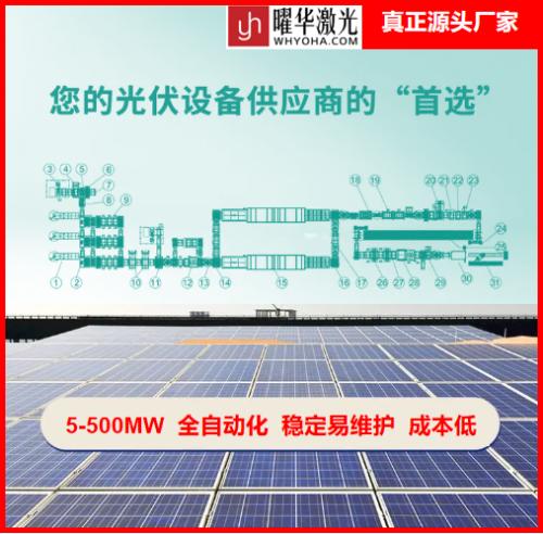 5-100MW半自动光伏产线的柔性配置,核心是“按需定制、灵活扩容、工序可调”,不搞一刀切的设备堆砌,贴合厂区空间、订单规模、预算范围做个性化排布,既能满足常规量产,也能适配小批量、多规格的定制化生产,***大限度提升产线利用率。这套柔性配置体系覆盖组件生产全流程,从前端电池片处理到后端封装检测,均可按需增减设备、调整工序节奏。行业内适配该柔性布局的优质设备方案中,曜华激光旗下光伏板块设备几乎覆盖光伏组件生产线全流程,严格遵循官网产品参数,推出适配柔性产线的模块化设备,无论是串焊、层压封装、EL检测还是装框设备,均可自由组合搭配,完美契合5-100MW产线的柔性布局需求,杜绝设备闲置与产能浪费。
