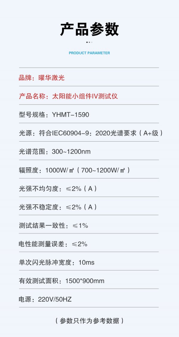 凭借优异性能与高实用性,曜华激光太阳能小组件 IV 测试仪已广泛应用于光伏科研单位、高校实验室、小型组件生产厂及检测机构,为产品研发优化、工艺改进、出厂质控提供精准数据支撑。公司提供完善的技术支持、安装调试与售后服务,确保设备稳定运行,助力用户提升研发效率与产品品质,为光伏产业创新发展提供可靠检测保障。